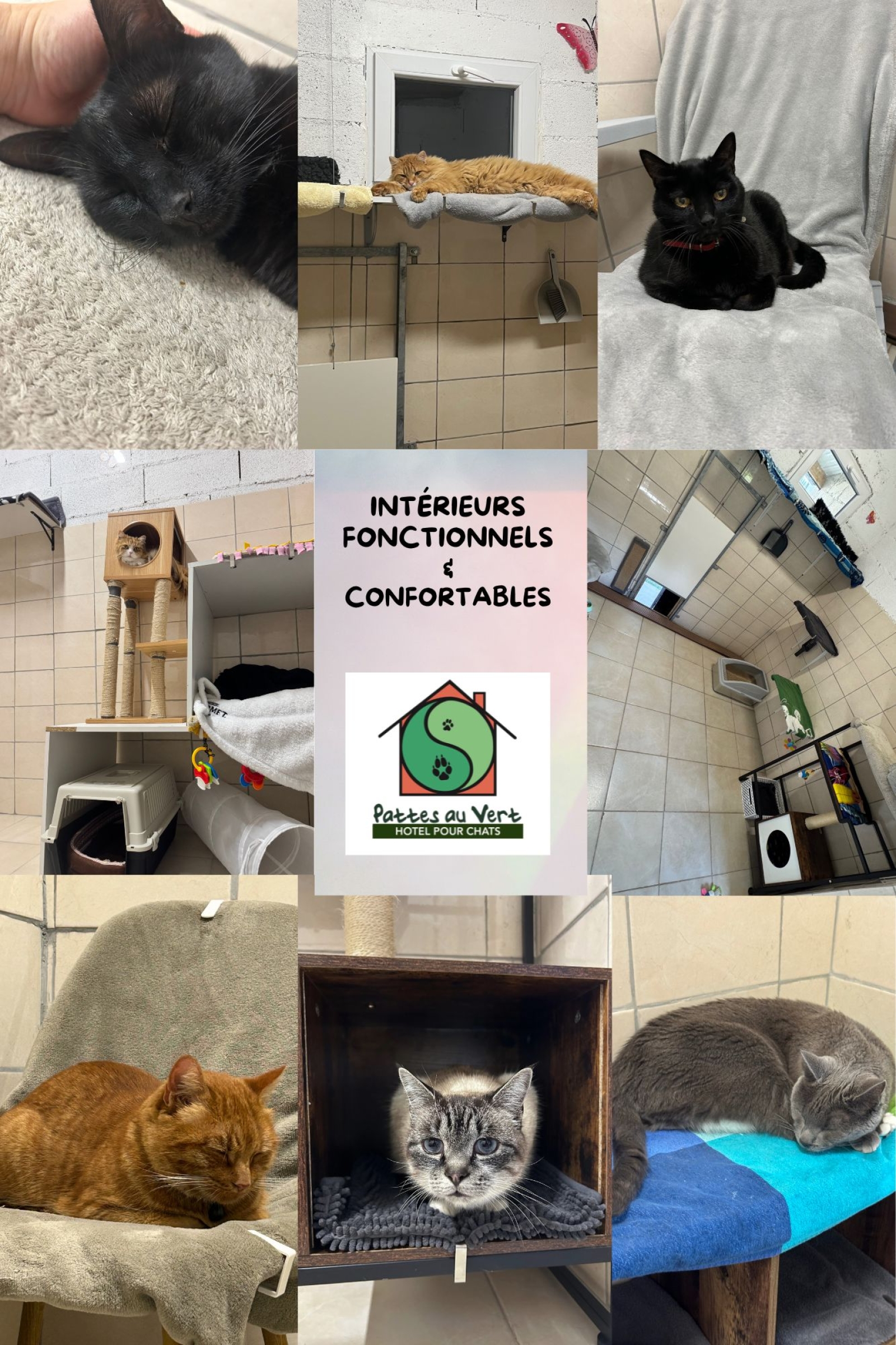 Chaque chat dispose d'un espace intérieur organisé pour répondre à ses besoins naturels :