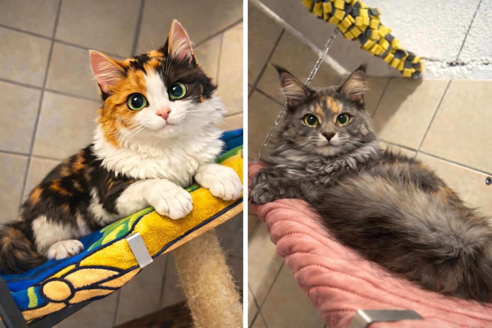 Tous les hébergements sont agrémentés d’accessoires divers leur permettant d’exprimer leurs comportements essentiels félins : arbres à chats, griffoirs, cachettes, perchoirs, fauteuils.